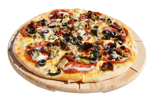 TOMATO, MOZZARELLA, SALÁM VENTRICINE, CIBULE, OLIVY, PÁLIVÉ FEFERONKY