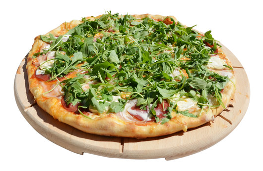 RAJČATA, SMETANA, MOZZARELLA, SALÁM, SLANINA, HERMELÍN, CIBULE, RUKOLA