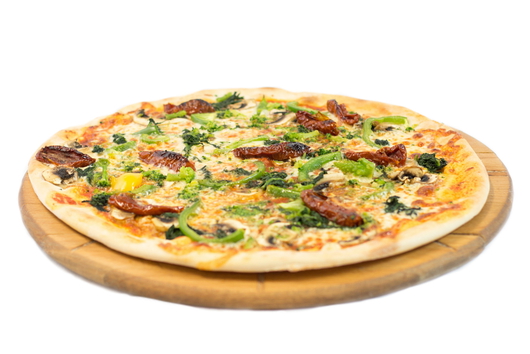 TOMATO, MOZZARELLA, ŽAMPIONY, ŠPENÁT, PAPRIKA, SUŠENÁ RAJČATA, BROKOLICE