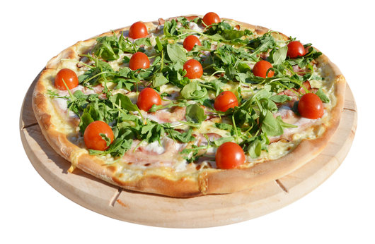 TOMATO, MOZZARELLA, PANCETTA, CHERRY RAJČATA, RUKOLA