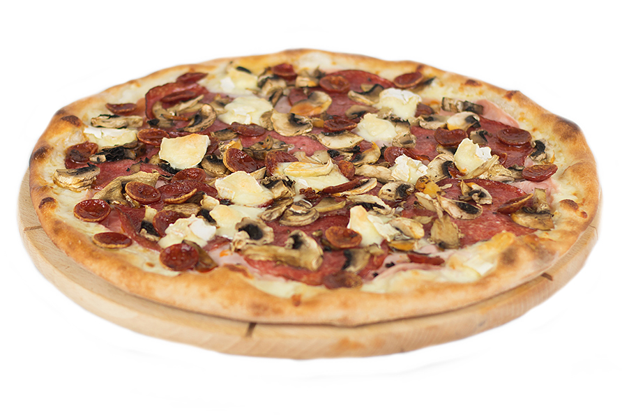 TOMATO, MOZZARELLA, SALÁM, ŠUNKA, HERMELÍN, ČABAJKA, ČERSTVÉ ŽAMPIONY